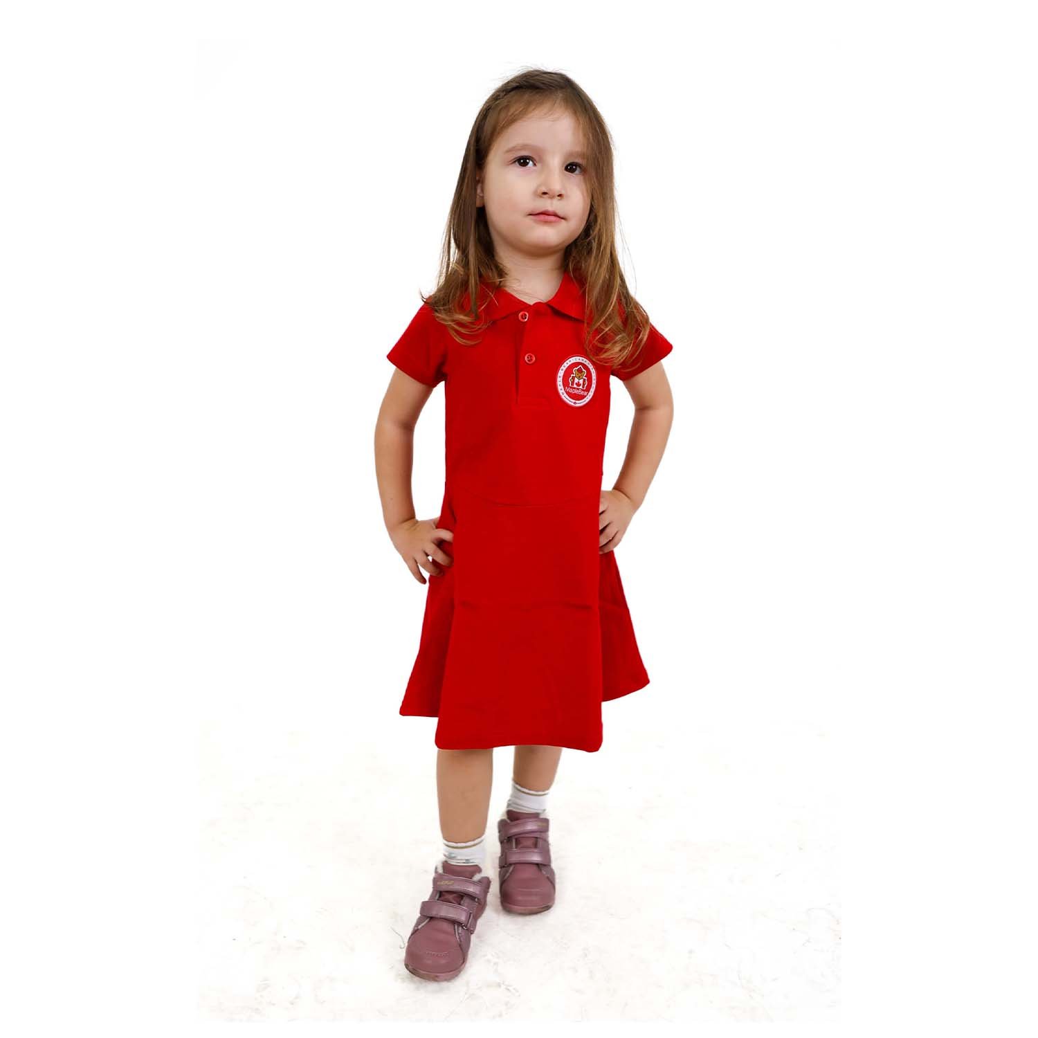 Details: Red Polo Piqué Dress featuring short sleeves and a flattering fit & flare silhouette. Designed with an above-the-knee length.