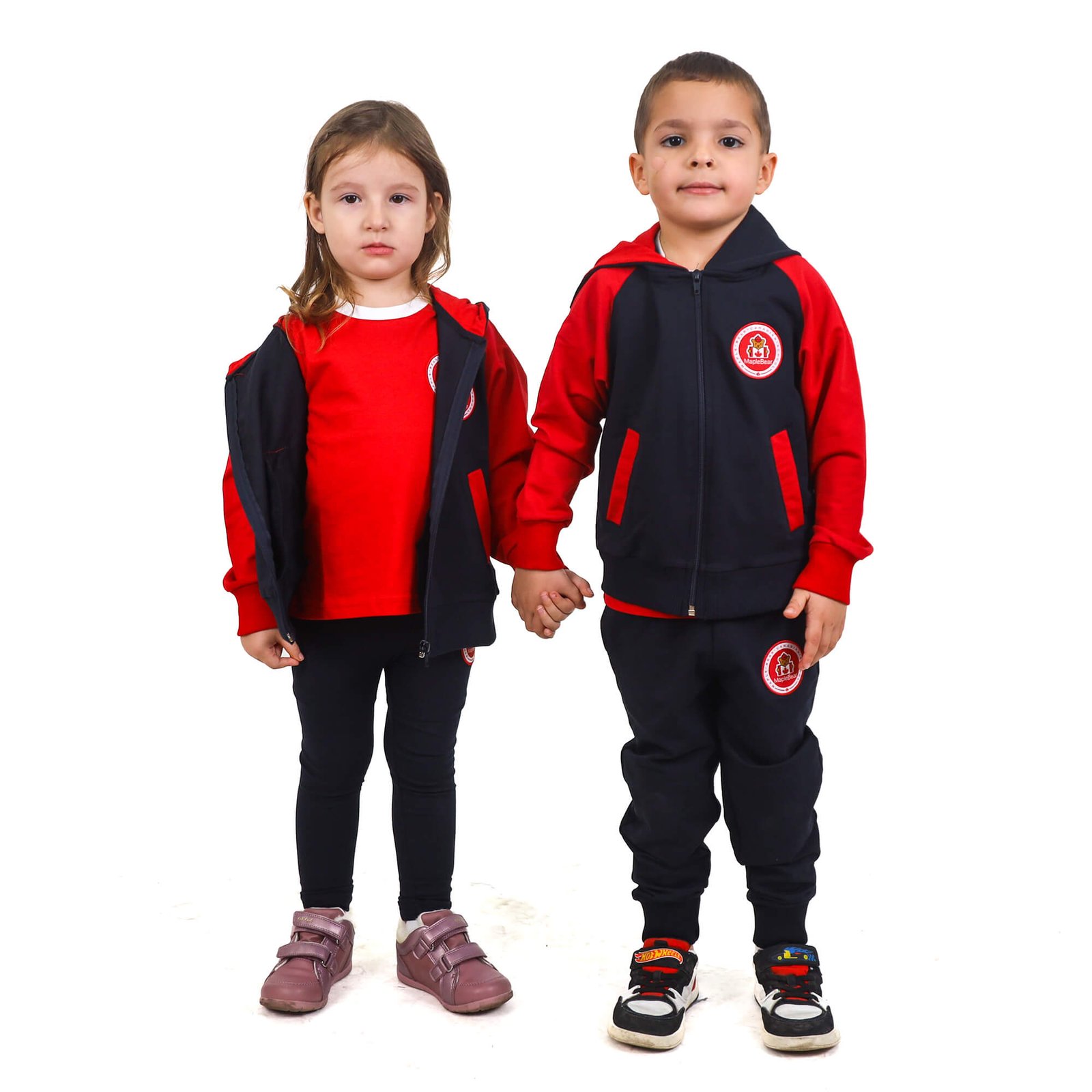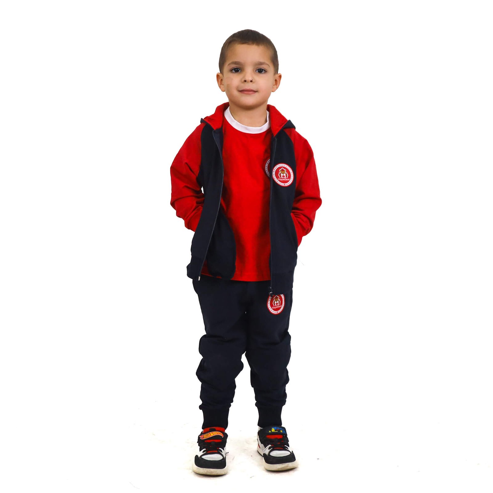 Color: Navy Blue with red sleeves, pockets & hoodie lining.