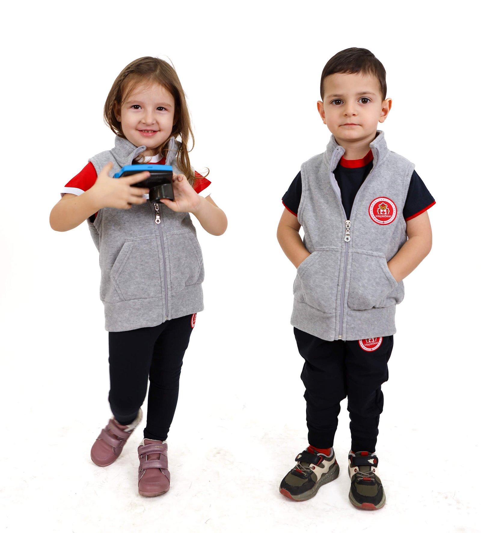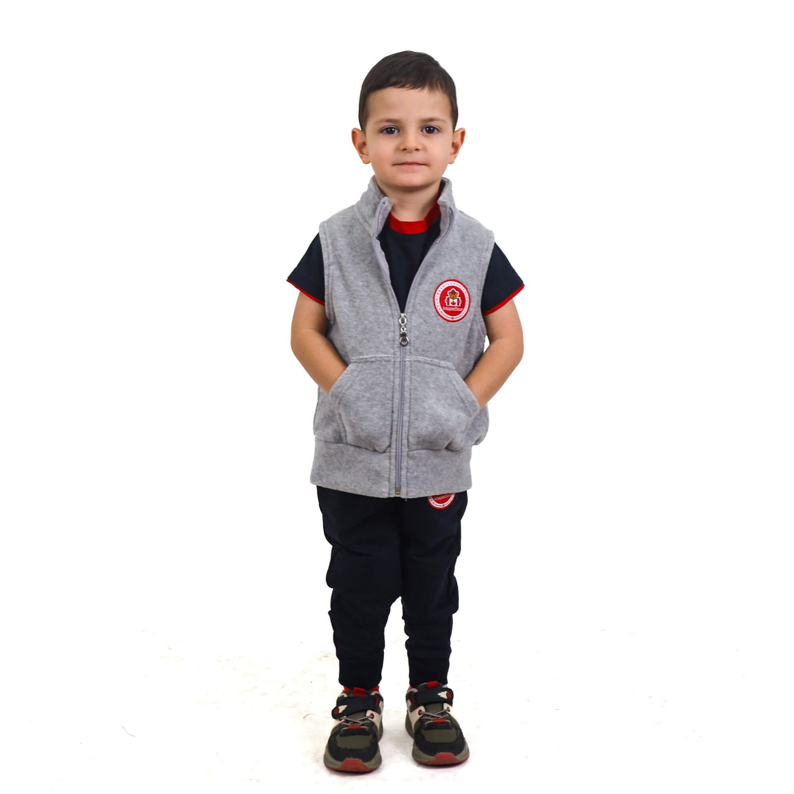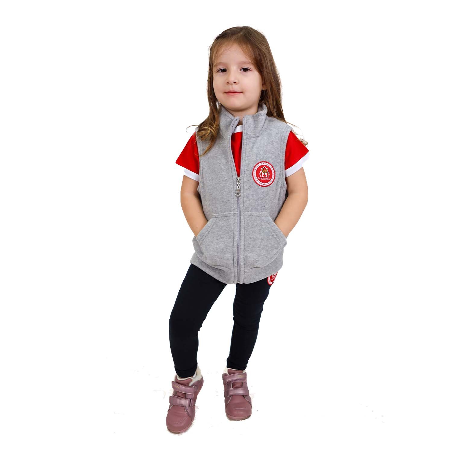 Details: Unisex Light Gray Polar Vest with a sleeveless design and a distinctive Maple Bear sign on the back. Ideal for layering in colder weather.